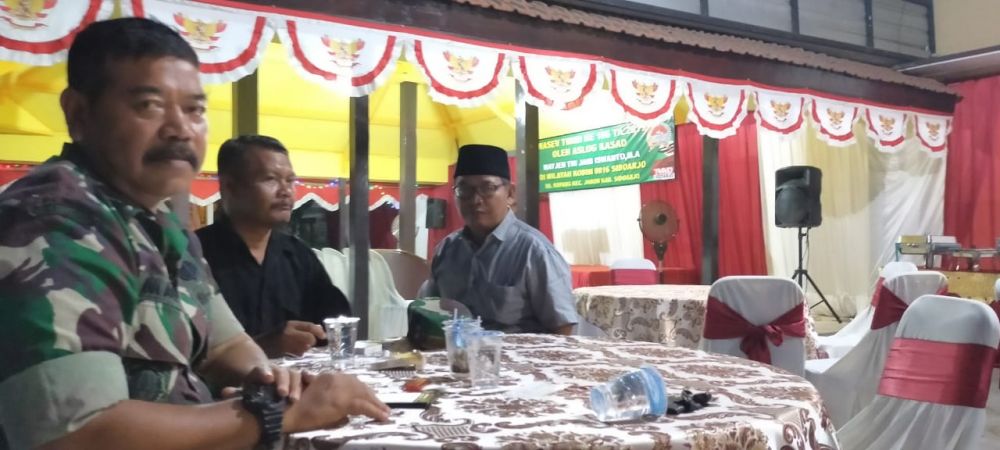 Sidoarjo - Danramil 0816/08 Jabon kabupaten Sidoarjo Kapten Inf l Made Sudiadnyana Memanfaatkan Waktu Saat TMMD ke 106 Untuk Komsos bersama masyarakat. Bertempat di balai desa kupang dengan Bapak Muhamad yang kesehariannya sebagai kepala desa Kupang.