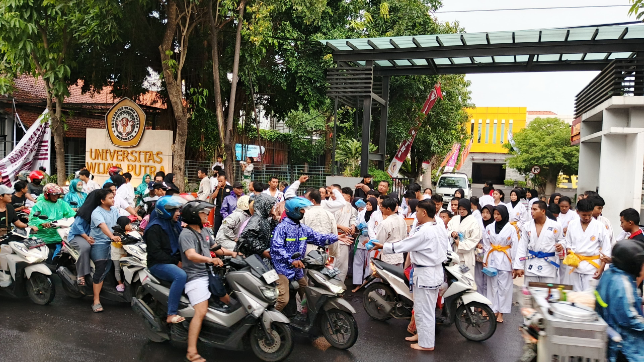 Surabaya,abadinews.id - Keluarga besar Jujitsu Dojo Wijaya Putra dan beberapa Dojo di wilayah Surabaya Barat mengadakan latihan bersama dan bagi-bagi takjil di depan Kampus Wijaya Putra, Babat Jerawat, Benowo, Surabaya, Minggu (23/3/2025).