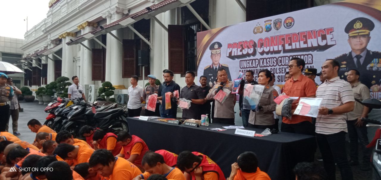 Dalam kesempatan ini,Polrestabes Surabaya mengungkap Kasus Tindak Pidana Curanmor dan Pencurian R4 dengan jajaran Polsek untuk menjawab keresahan masyarakat yang terjadi di Surabaya.