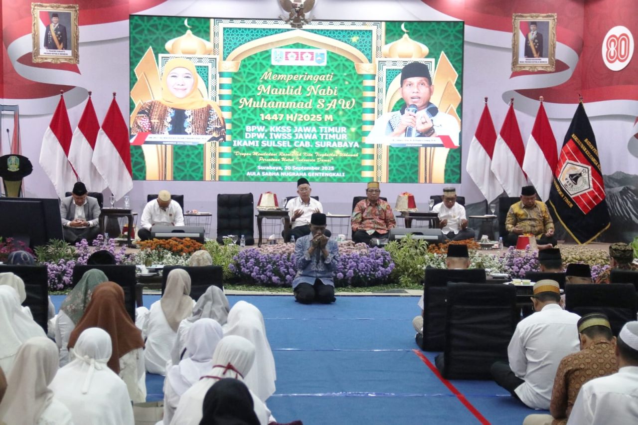 Surabaya,abadinews.id – Badan Pengurus Wilayah (BPW) Kerukunan Keluarga Sulawesi Selatan (KKSS), Dewan Pengurus Wilayah Ikatan Wanita Sulawesi Selatan (IWSS) Jawa Timur, dan Ikatan Pelajar Mahasiswa Indonesia (IKAMI) Sulsel Cabang Surabaya sukses menggelar peringatan Maulid Nabi Muhammad SAW 1447 H/2025 M.