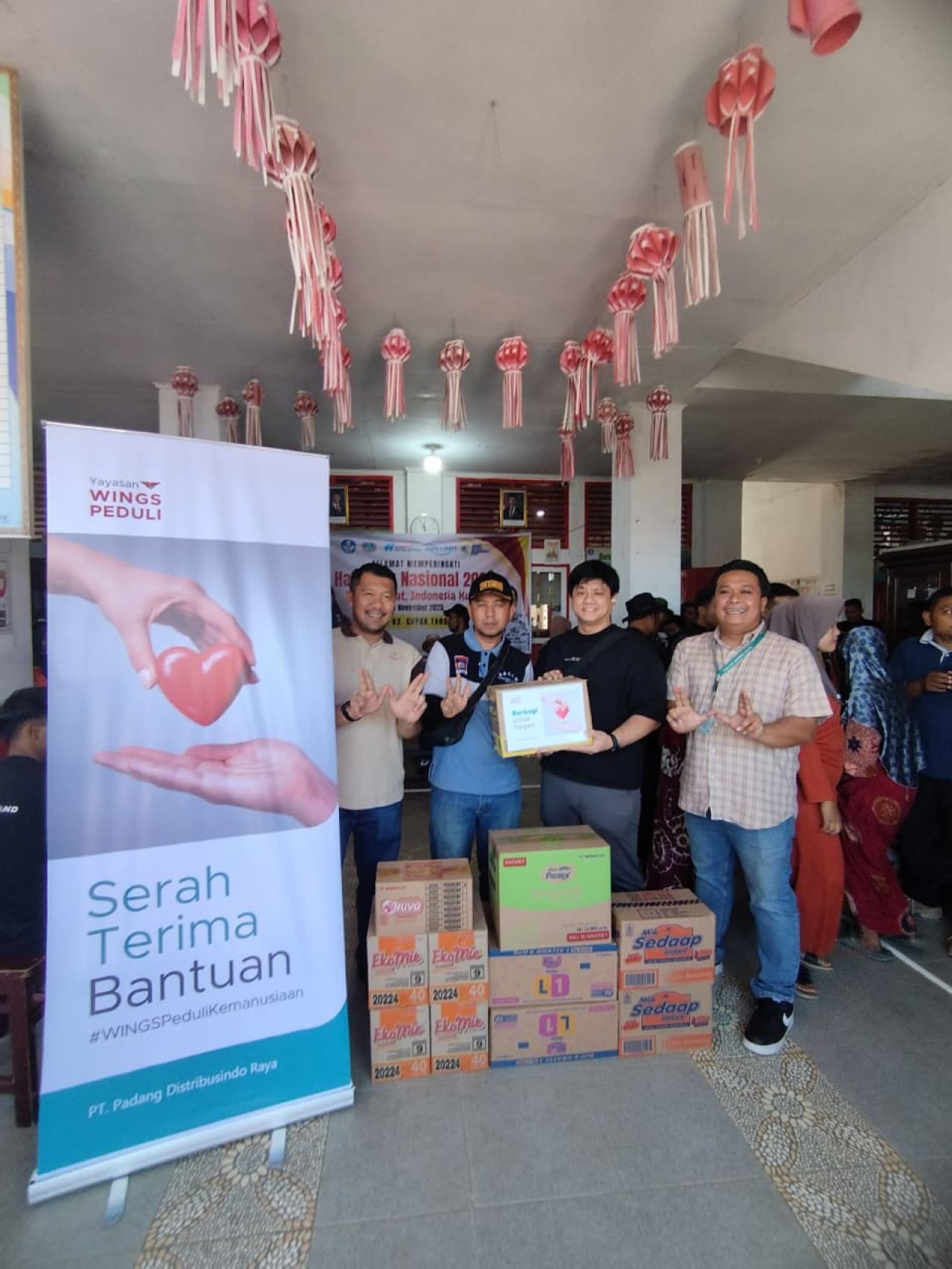 Sejak 28 November 2025, Yayasan WINGS Peduli telah mengerahkan tim distribusi untuk menyalurkan bantuan berupa makanan instan seperti mi, air minum dalam kemasan, serta produk kebutuhan pribadi seperti sabun mandi, sampo, pembalut, popok anak, dan popok celana dewasa. Tak hanya itu, berbagai produk home care seperti pembersih lantai, detergen, dan cairan pencuci piring juga dikirimkan untuk membantu masyarakat membersihkan rumah dan lingkungan pascabanjir.