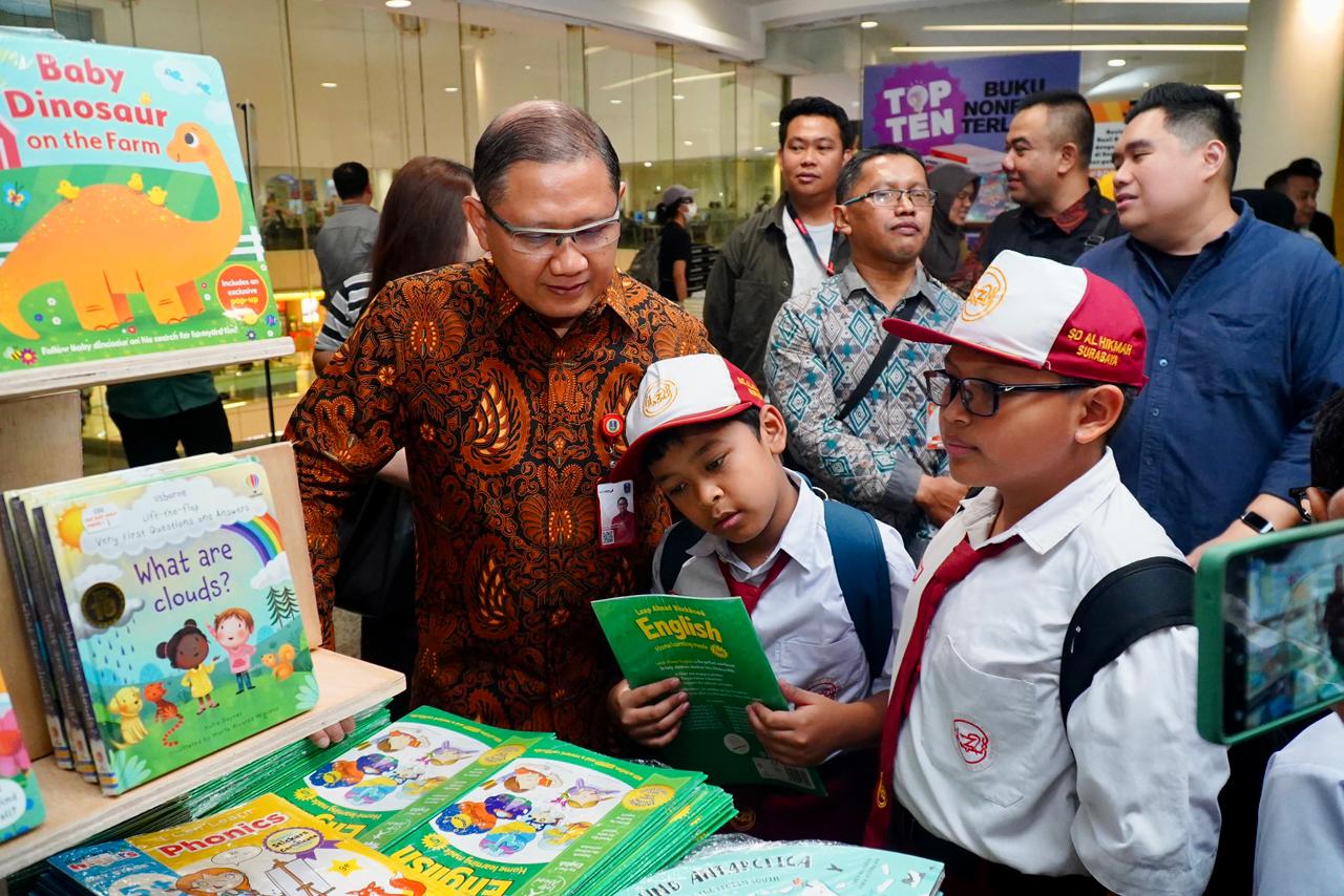 Usai membuka acara secara resmi, Kadindik Jatim meninjau area pameran yang menampilkan ribuan judul buku dari berbagai kategori, mulai dari literatur anak, pengetahuan umum, pengembangan diri, sains populer, hingga karya internasional terkemuka.