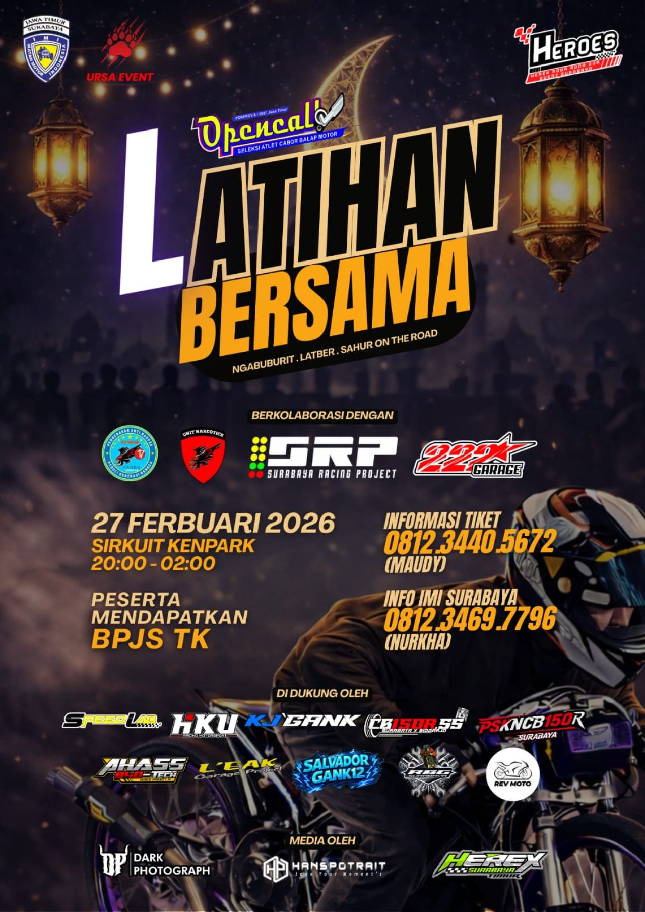 abadinews.id,Surabaya – Ikatan Motor Indonesia (IMI) Kota Surabaya bersama Ursa akan menggelar kegiatan Open Call Latber (latihan bersama) pada 27 Februari 2026.