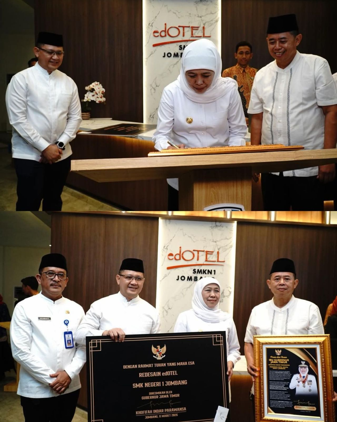 Peresmian Edhotel tersebut menandai komitmen Pemerintah Provinsi Jawa Timur dalam meningkatkan kualitas pendidikan vokasi melalui penyediaan fasilitas pembelajaran yang modern, relevan, dan mendukung penguatan kompetensi peserta didik. Edhotel atau *Education Hotel* yang berada di lingkungan SMKN 1 Jombang diharapkan dapat menjadi sarana praktik yang representatif bagi siswa, khususnya pada program keahlian di bidang perhotelan dan layanan hospitality.