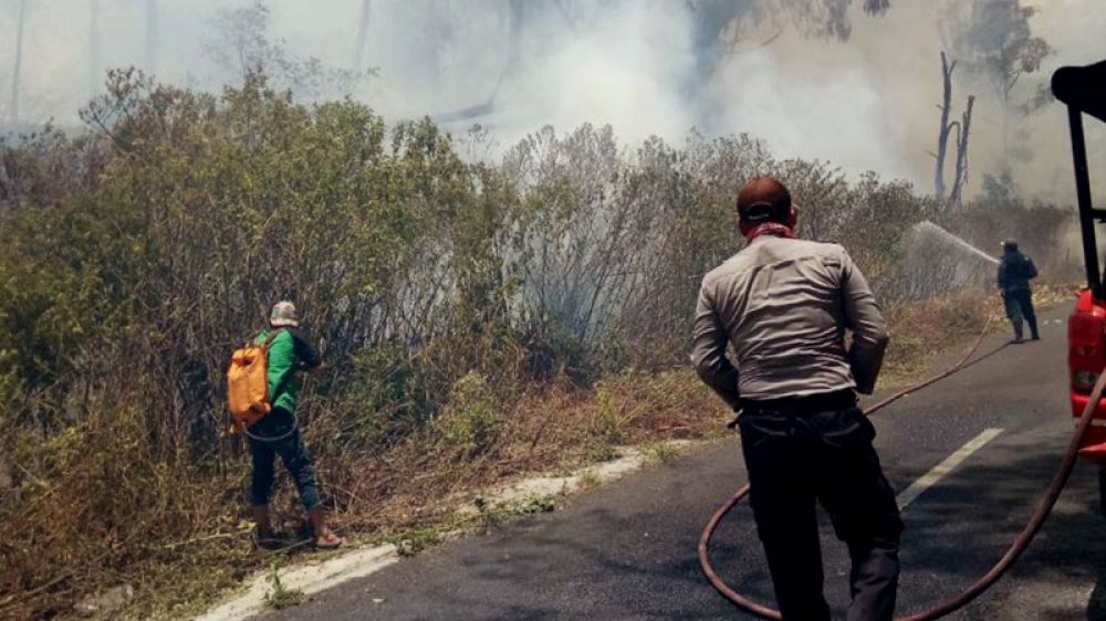 "Kebakaran sangat luas, posisi kiri dan kanan itu api semua, selain itu wilayah yang terbakar sangat sulit untuk dijangkau, sehingga pemadaman dilakukan secara manual dengan memukul-mukulkan api dengan dahan," tambah Fajar.