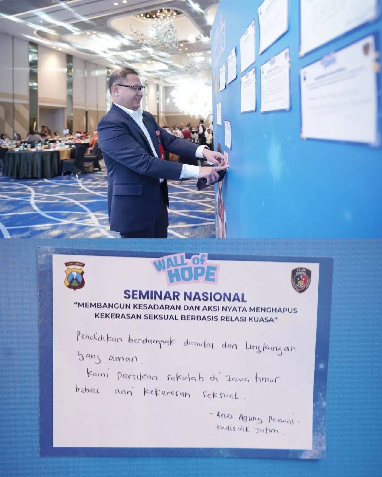 Kepala Dinas Pendidikan Provinsi Jawa Timur, Aries Agung Paewai, dalam paparannya menegaskan bahwa dunia pendidikan harus menjadi garda terdepan dalam menciptakan lingkungan yang aman dan bebas dari kekerasan, termasuk kekerasan seksual. Ia menilai bahwa sekolah tidak hanya berfungsi sebagai tempat transfer ilmu, tetapi juga sebagai ruang pembentukan karakter dan nilai-nilai kemanusiaan.