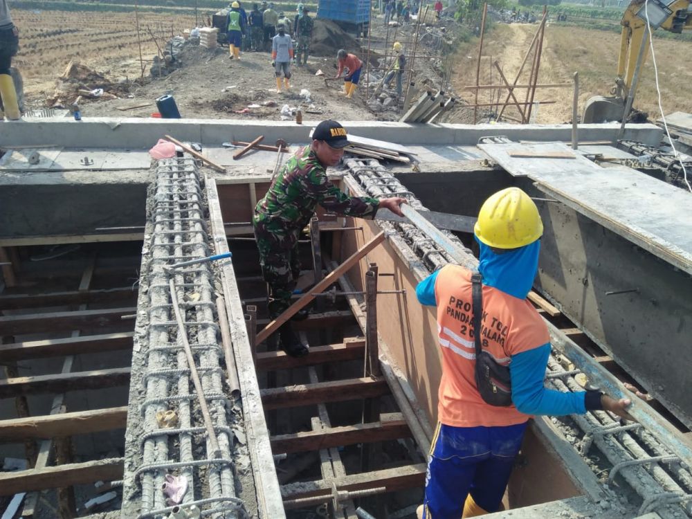 Sidoarjo - TMMD ke 106 Kodim 0816 Sidoarjo di desa Kupang Kecamatan Jabon Kabupaten Sidoarjo kali ini berfokus pada pengerjaan Jembatan demi percepat pembangunan hingga 100 % pada H-3 sebelum penutupan TMMD Ke 106.