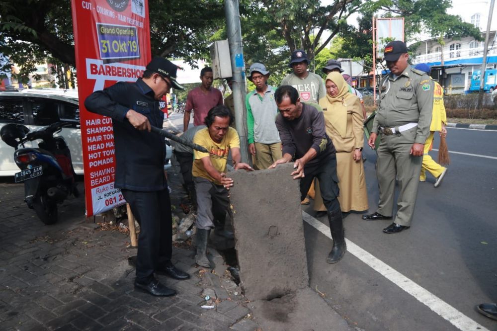 Kemarin (4/11), Wali Kota Malang Sutiaji melakukan inspeksi mendadak (sidak) di Jalan Soekarno-Hatta, Kota Malang. Di wilayah ini ditemukan drainase dan avur yang tersumbat sampah dan tanah yang dibuang sembarangan oleh warga.