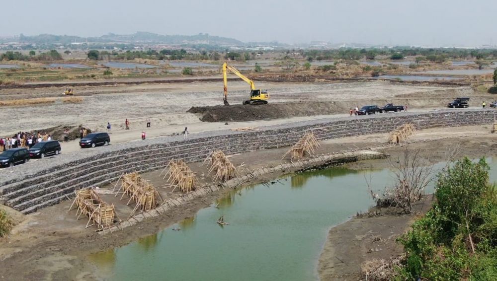 “Kita bersyukur ada tanah aset pemkot. Kalau bangun tanggul dari kontruksi seperti beton mahal dan menghabiskan banyak anggaran, kami tidak punya uang. Makanya, kita bikin tanggul dari tanah,” lanjut dia.