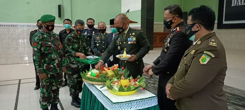 “Tumpeng ini sebagai penghormatan khusus kepada prajurit TNI yang telah mengabdi di dunia militer, khususnya di Kodim 0822,” kata Dandim 0822/Bondowoso Letkol Inf Jadi, S.I.P. (Erna/Rudi)