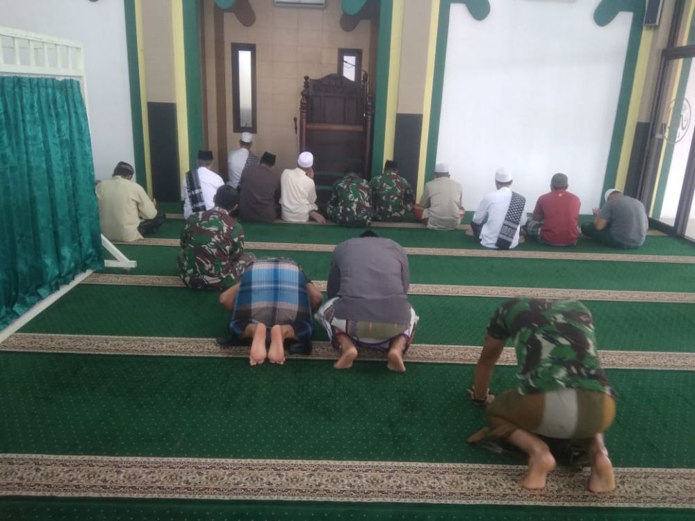 Sidoarjo - Di sela-sela kesibukan menjalankan tugas sebagai personil Satgas TMMD (TNI Manunggal Membangun Desa) ke-106 tahun 2019 Kodim 0816 Sidoarjo tidak lupa meluangkan waktunya untuk tetap melaksanakan sholat 5 waktu. Tepatnya di siang itu mereka melaksanakan sholat berjamaah bersama masyarakat setempat di masjid Al Hidayah Desa Kupang, Kecamatan Jabon, Kabupaten Sidoarjo, Kamis 10/10/2019.