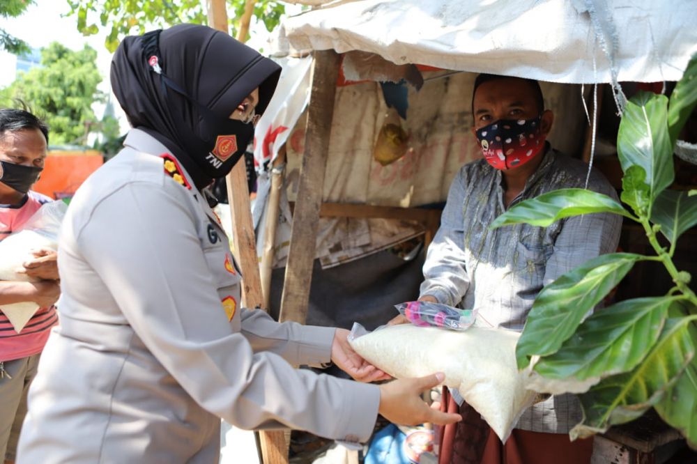 Surabaya, Abadinews.id ~ Kapolres Pelabuhan Tanjung Perak AKBP Ganis Setyaningrum, S.Si., M.H. Bersama PJU melaksanakan giat Bhakti Sosial, Pembagian Sembako Berupa Beras dan Paket Berisikan Hand Sanitizer serta Masker kepada warga disekitar Mako Polres, Selasa (06/10/20).