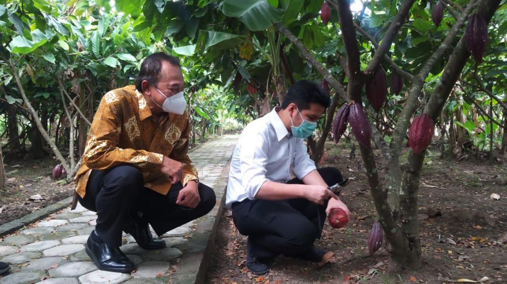 Blitar, Abadinews.id ~ Kampung Coklat di Kota Blitar menjadi tujuan Wakil Gubernur Jawa Timur Emil Elestianto Dardak untuk dikunjungi. Kehadiran Mantan Bupati Trenggalek tersebut menjadi bagian dalam rangka meninjau langsung pemulihan ekonomi disektor wisata. Minggu (11/10/20)