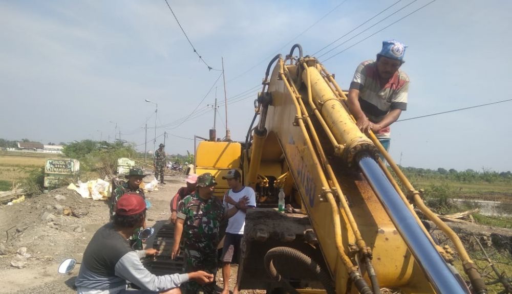 Jabon Sidoarjo - Pelaksanaan TMMD ke 106 di Desa Kupang, Kecamatan Jabon, Kabupaten Sidoarjo membawa semangat baru bagi masyarakat Desa Kupang yang sehari-harinya sepi, kali ini diramaikan oleh personil Satgas TMMD ke 106 tahun 2019 Kodim 0816 Sidoarjo, dimana para anggota Satgas berbaur dengan masyarakat, saat bekerja membangun akses jalan dan juga pada saat-saat tertentu. Kegiatan Komsos dilakukan oleh anggota satgas TMMD dengan tujuan lebih mendekatkan diri dengan masyarakat dan para operator alat berat sehingga tercipta kemanunggalan TNI dengan rakyat.