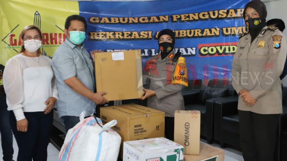 Surabaya, Abadinews.id ~ Para pengusaha hiburan Kota Surabaya yang tergabung di Gabungan Pengusaha Rekreasi Hiburan Umum (GAPERHU), memiliki kepedulian tinggi dalam mencegah Virus Corona (Covid-19). Implementasinya menyerahkan bantuan tersebut kepada Polres Pelabuhan Tanjung Perak Surabaya (KP3) untuk mencegah penyebaran Virus Corona. Jumat (23/10/20)