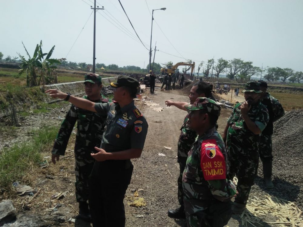 Danrem 084/Bj Kolonel Inf Sudaryanto S.E meninjau lokasi TMMD ke 106 tahun 2019 di desa Kupang, Jabon, Sidoarjo Tahun 2019. Senin (14/10/20197).